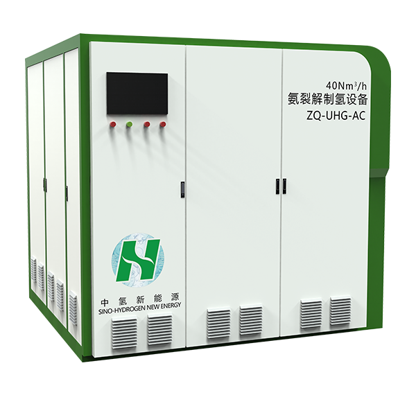 氨裂解制氫與膜分離氫氣純化技術高度集成的一體化設備,與傳統氨裂解制氫設備(采用變壓吸附PSA氫氣純化)相比,高溫粗氫直接進入膜純化系統,抗高含量殘氨,無需殘氨處理,流程更短、工藝匹配性更強、兼容性更高。ZQ-UHG-AC系列具有集成度高、體積小,能耗低、啟動快、氫氣純度高等優勢。